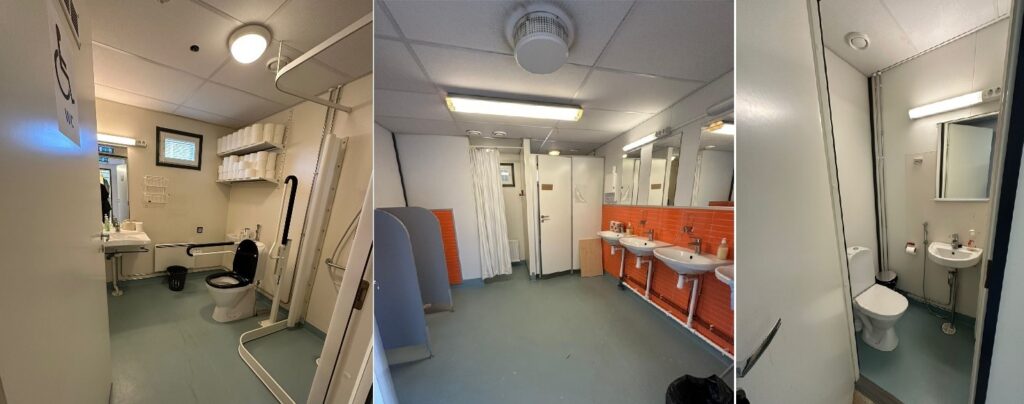 - kolme WC-istuinta, joista yksi Inva-mitoituksella