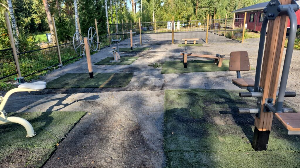 - Pelialueella on myös jäteastioita.