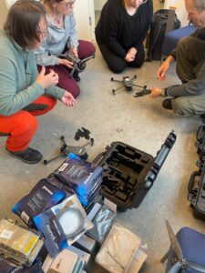 Ilmailutoimikunnan sisäinen koulutus jossa kokeiltiin juuri hankittua droonikalustoa ensimmäistä kertaa Centerin maastossa.