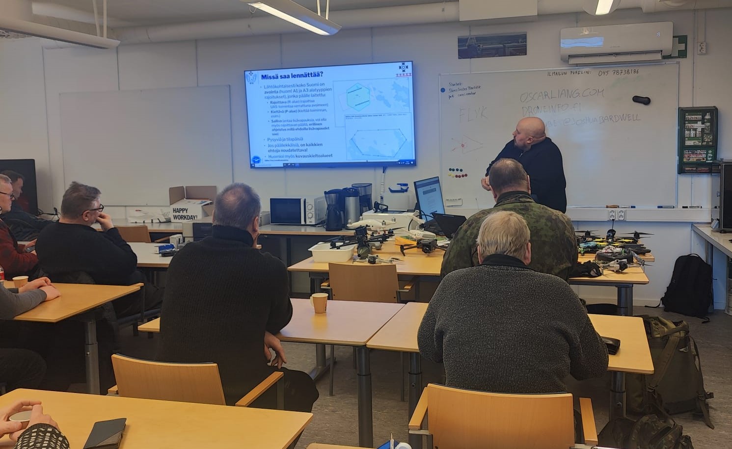 Molemmat kurssit olivat hyvin suosittuja ja reulut kaksikymmentä henkeä saatiin perehdytettyä droonitoiminnan saloihin