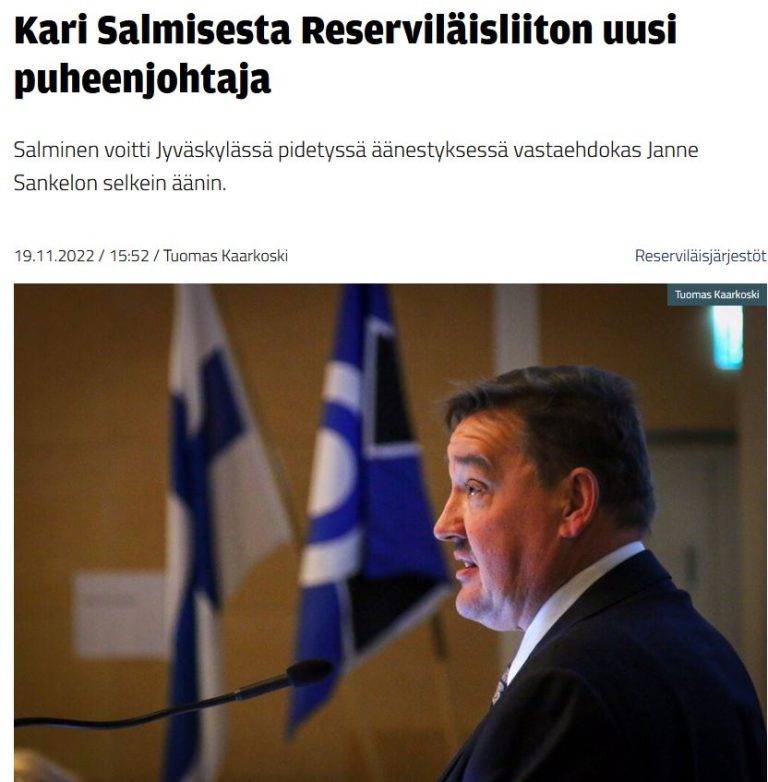 Sääksmäen Reserviläiset Ry:n kunniapuheenjohtaja Kari Salminen on valittu äänivyöryllä Reserviläisliiton uudeksi puheenjohtajaksi, onnea Karille uuteen tehtävään!